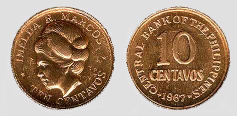 Die Vorderseite zeigt die Büste der ehemaligen Philippine first lady Imelda Marcos.
