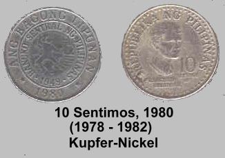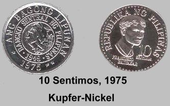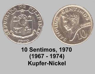 Probemünze (geprägt 1967) der Central Bank of the Philippines im Wert von 10 Centavos.