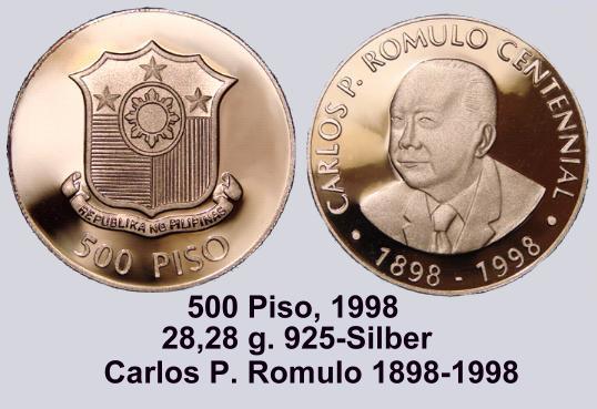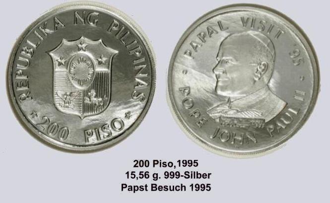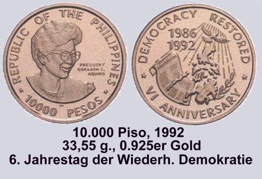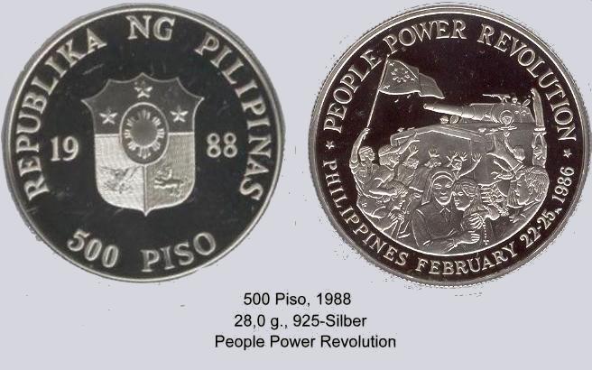 Die Münze mit dem derzeit höchsten Nennwert ist die 10.000 Piso Münze "people power"