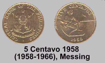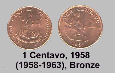 Die ersten Umlaufmünzen wurden erst 1958 geprägt, aber nur je 1000 Münzen mit dem Wert 1 C., 5 C., 10 C., 25 C. und 50