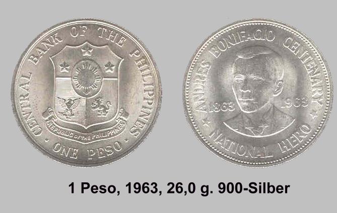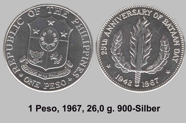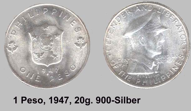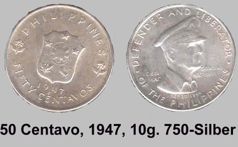 Die ersten Münzen die geprägt wurden, ware die 50 Centavo und 1 Peso Sonderprägungen von General MacArthur 1947.