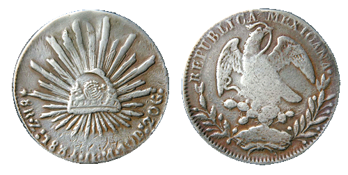 8 Reales, Mexico, Zs 1834 OM mit Counterstamp Isabell II (YII)