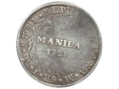 zuzulassen. Von 1828 bis 1830 wurden die jetzt berühmten "MANILA" Gegenstempel zu diesem Zweck auf Münzen der
