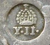 1832 ging die Maschine kaputt und kleinere kreisförmige Punzen von Ferdinand VII (F7)