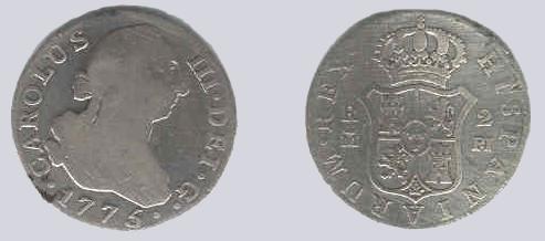 Ferdinand VI (1746-1759) und Charles III (1759-1788) hergestellt. Bei den Goldmünzen waren es die 2 (Dublone)